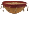 This traditional gita (GHEE-tuh) is crafted in the style of Burkina Faso by cultural artisans in Ghana, featuring a leather edge cover, burned designs, and hand crafted glass korob beads. The traditional gita is made of half of a calabash gourd with bead or shell pairs attached around the open rim. It can be played like a drum, producing similar stroke sounds as membranophone hand drums, or it can be girated in two hands causing the shells to hit against the gourd in rhythm. The gita is traditionally played both as a percussion instrument and as a dance prop in creating choreographed percussion movement and sound. The gita is also a great center piece as home decor, or for use as a bowl, which is how calabash gourds are used everyday in Africa. Each gita is hand made in Ghana using traditional methods and features: