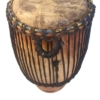 This line of carved, rope tension, cow skin congas by Africa Heartwood Project add a whole new dimension to Afro-Cuban, Latin, and Congolese drumming. Being handcrafted out of a solid piece of Mansonia wood, and headed with unprocessed, thick cow skin, with oversize dimensions, the sound is warm and full, tones punchy, and bass much larger than usual for congas. These Classic Carved Congas are also much more comfortable to play thanks to the thick rounded bearing edges and dropped tuning rings. Available in four sizes: 10″ Quinto, 11″ Conga, 12″ Tumbadora, and 13″ Super Tumba. Each one feels larger than standard congas because of their hand-carved nature and full 28″-30″ height. Each drum features: