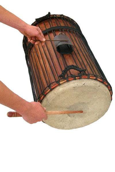 - Clam shape allows side not attached to dunun ropes to resonate