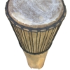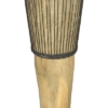 This ngoma is larger than most full-size ngoma drums, and lighter than would be expected for the 42 inch height. The bass response is impressive with powerful tones and thick cow-skin slaps. The smaller ngoma (n-GO-muh) drum is carved to be lightweight and compact, making it well suited as a travel drum. The body style is a straight taper from top to base, both inside and outside dimension, similar to an extra-tall ashiko shape.
