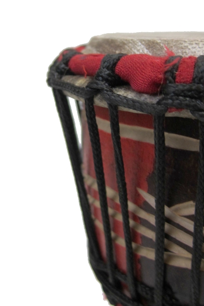- Goat skin head, metal rings, tuning loops and vertical ropes