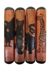 A wonderful, ancient board game that tests strategy and mathematical skill. Children in Africa have played this game for centuries, and adults spend hours and hours picking up and dropping stones into the board’s 12 pits, socializing as they play. The game can be played non-strategically by young children not even able to count, so recommended age is 4+ (small parts not recommended for children under 4). As children learn basic arithmetic this game will improve their skill and train them to think before acting. This Oware game consists of a hand-carved board and 48 grey/green tear seeds. The board is the carrying case, so you don’t need a bag – it is all self-contained. The Osese wood is given 12 pits, connected with 2 hinges, and stained on the inside and outside with redwood and black dye. An Adinkra symbol or other artistic image from Ghana (elephant, village scene, etc.) is carved on the top outside of the board. Purchased and imported using fair-trade practices. Play this African game with an authentic African board! Approximate size when closed: Length 15.5″; Width 2.5″; Height 2.5″