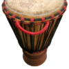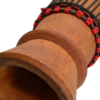 This bugarabu is a fine example of expert carving and the unique, powerful sound the bugarabu is known for. Bugarabu sound quality is greatly determined by the quality of the skin, which on this drum is of optimal thickness, producing very deep, loud tones, slaps that bite through the air, and full bass. The quality of the wood is superior, with dark, seasoned Iroko wood, carved to uniform thickness and well seasoned. The Heartwood bugarabu from Ivory Coast features: