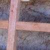 - goat skin head, shaved smooth and permanently installed on exterior frame